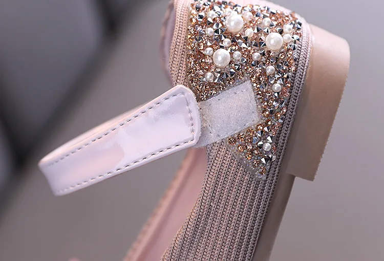 Сандалии для маленьких девочек, без застежки, с жемчужинами, криста...