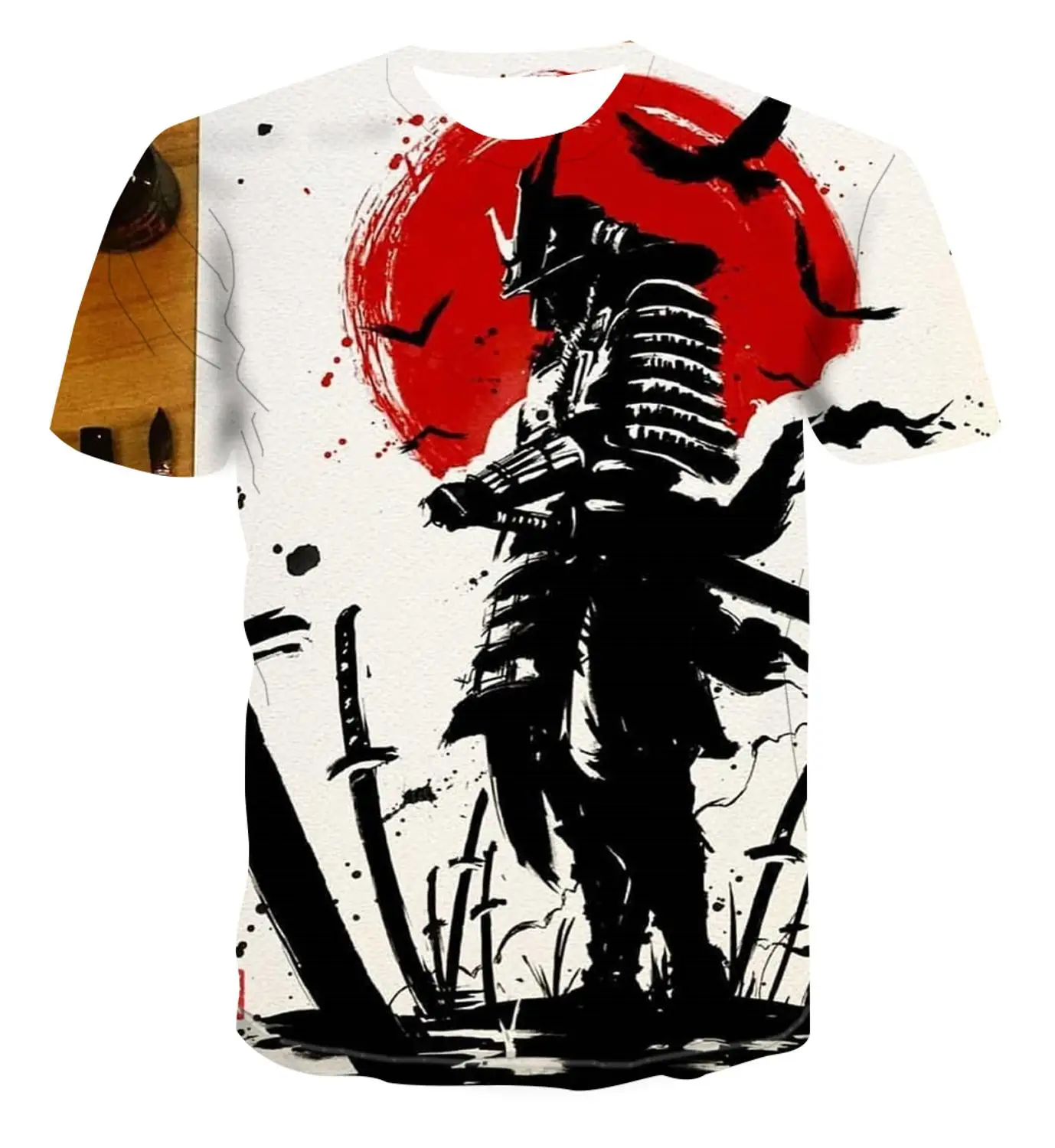Футболка с 3D-принтом самурая в японском стиле, модная рубашка с кр...