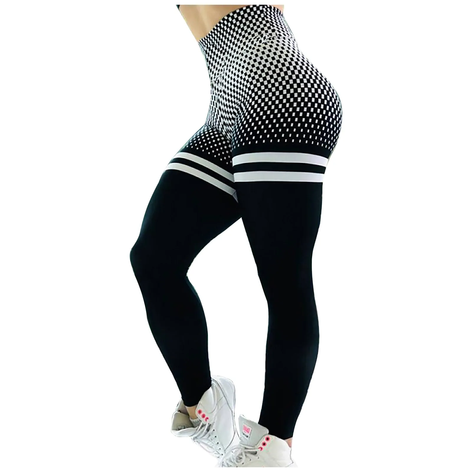 Клетчатый узор высокая талия дышащие для похудения спортивные штаны для йоги Беговые Спортивные