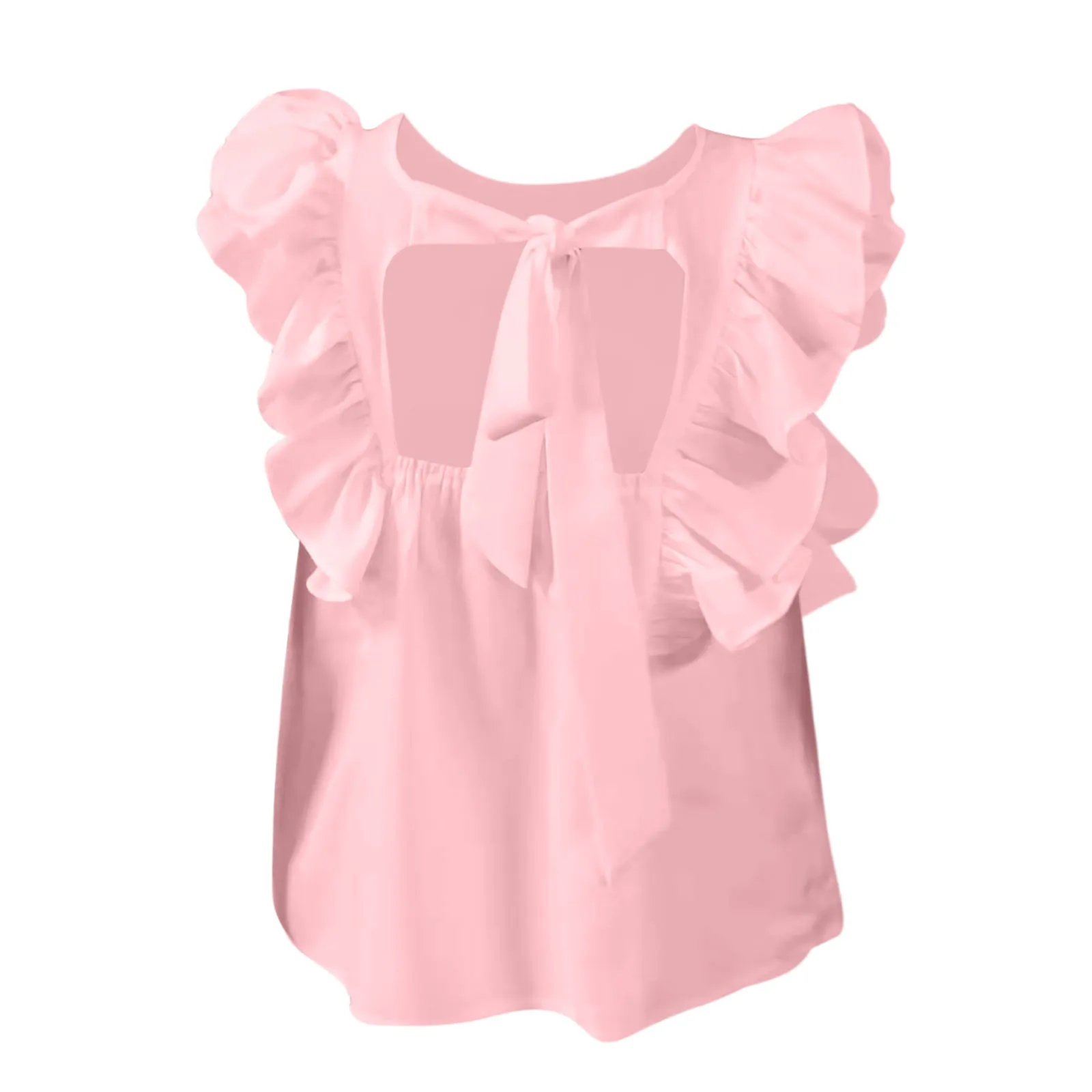 ❤Особенности:Рукав-бабочкаКруглый вырез,Сплошной цвет, Повседневный, модный стиль.