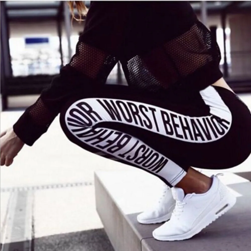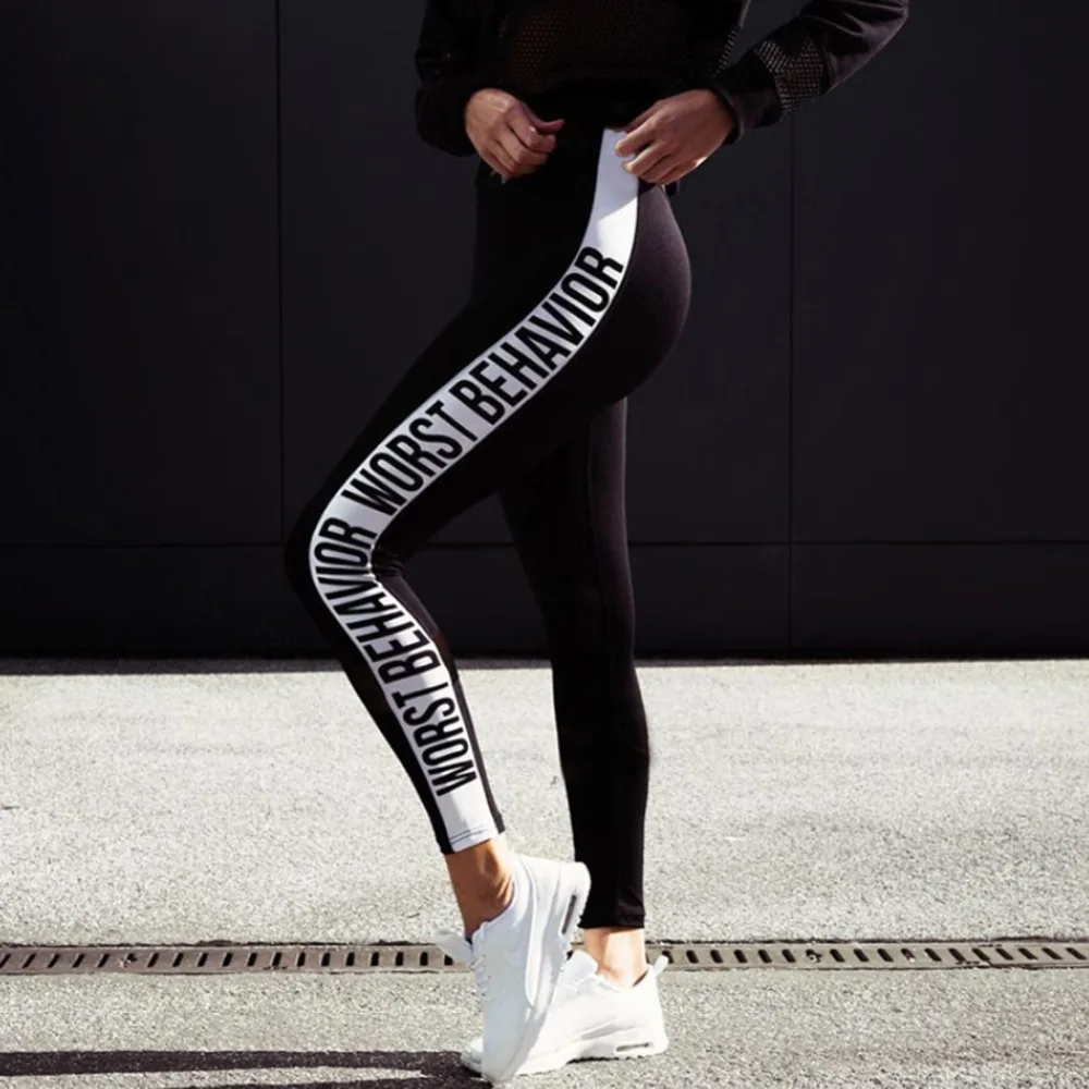 Леггинсы женские, из полиэстера, с V-образным вырезом и надписью