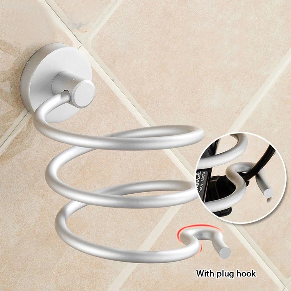 Настенный алюминиевый держатель для фена, подставка на спирали для ванной комнаты, аксессуар для ванной комнаты