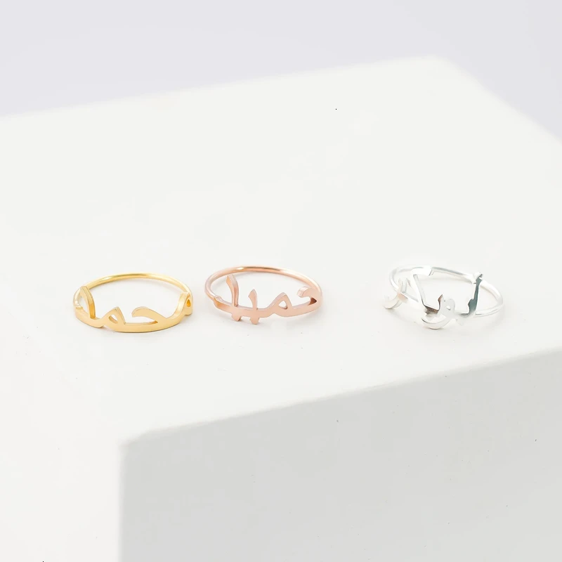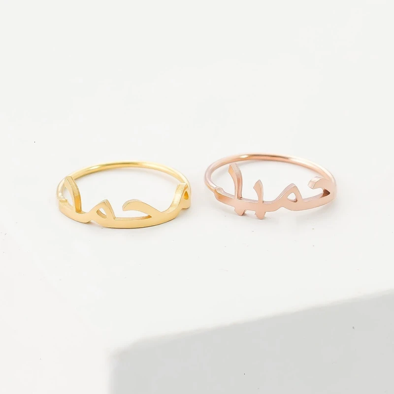 Кольца из нержавеющей стали, с арабским именем на заказ, кольца для мужчин и женщин, с арабскими буквами, исламские украшения, мусульманские украшения, подарки