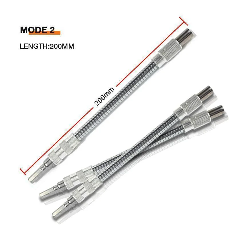 Он может быть подключен к электрической дрели, перезаряжаемой электрической дрели или ручному гаечному ключом, стриктуры, достигает места, чтобы скрутить винт и гайку, что другие дрели не могут приехать.