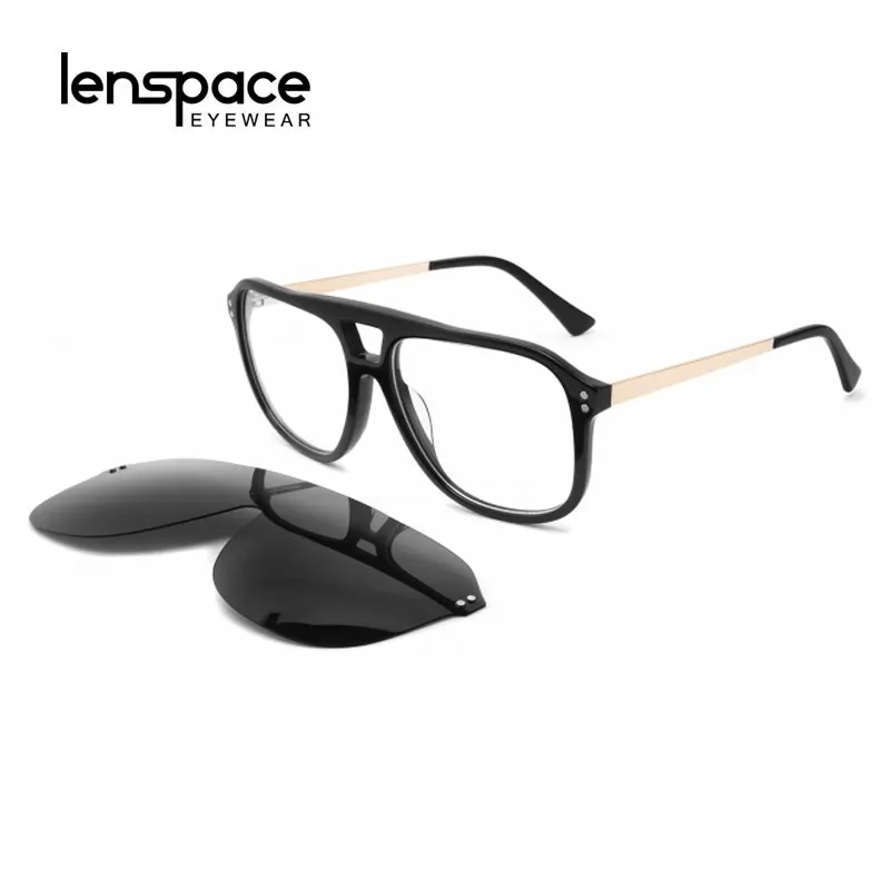 Солнцезащитные очки Lenspace квадратные для мужчин и женщин, поляризационные роскошные очки по рецепту с магнитной застежкой