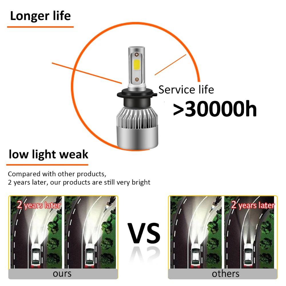 Лампы светодиодные для автомобильных фар, 2 шт.лот, H1, H3, H7, H4, H13, H11, 9004, 880, 9007, S2, 72 Вт, 8000лм, 6500 К, для освещения 9-36 в, 200 м