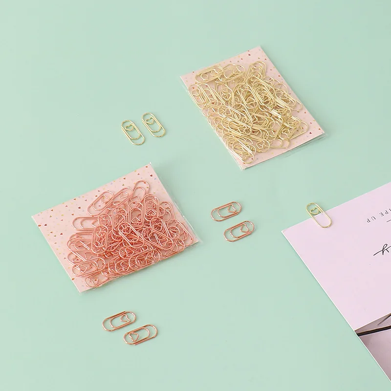 50 шт.компл. Симпатичные мини-скрепки в форме сердца цвета розового золота школьные принадлежности для офиса органайзер для файлов канцелярские принадлежности