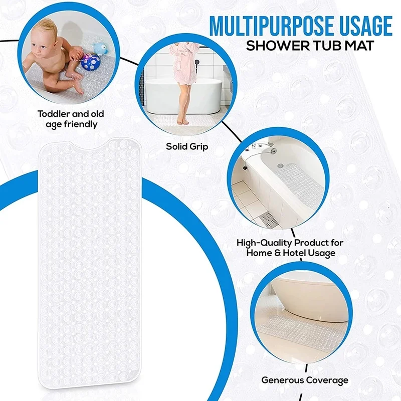 Сверхдлинные Нескользящие коврики для ванны, нескользящий Коврик для ванны, мягкий коврик для ванной, массажный коврик с присоской, прочный коврик для душа с присоской, ковер
