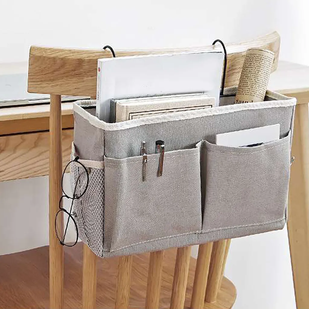 Холщовая подвесная сумка для хранения прикроватного столика, карман...