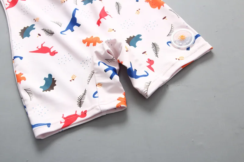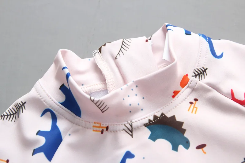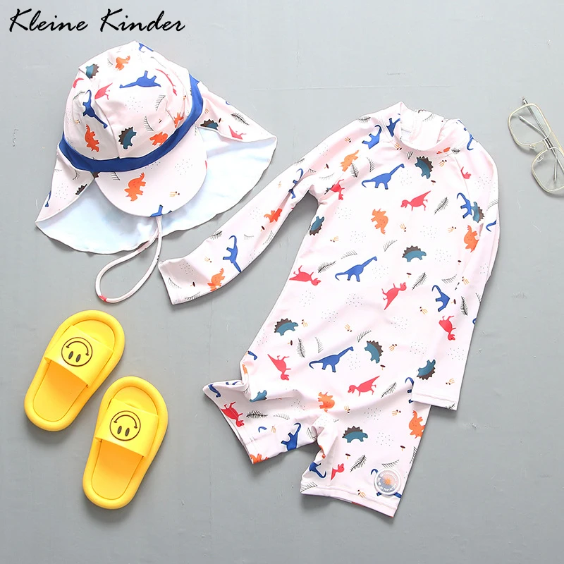 Купальник для мальчиков, слитный купальный костюм с шапочкой, с длинным рукавом, с динозавром и акулой, пляжная одежда для малышей