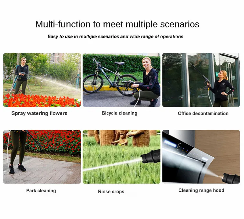 Особенности:● Мощный полностью Медный двигатель, автоматическое отключение и старт-стоп.● Портативный самовсасывающий, более быстрый и прочный, встроенный тонкий фильтр из нержавеющей стали, высокоэффективный и глубокая фильтрация примесей в воде.● Водяной пистолет может переключать тип воды по желанию, и поток воды можно постепенно регулировать с малого на большой, заменив насадку, А веерообразную и прямую регулировку водной линии можно переключать по желанию.● Мощный Срок службы батареи, литиевая батарея значительно продлевает срок службы машины● Интеллектуальный индукционный двигатель переменной частоты, двигатель распыления воды автоматически запускается, остановка двигателя распыления воды автоматически останавливается.● Его можно использовать как водяной пистолет для мытья, инструменты для полива сада.● Идеально подходит для полива сада, сельскохозяйственного орошения, мойки автомобилей, уборки дома и так далее.● Универсальное гнездо для аккумулятора, используется универсальное гнездо для аккумулятора, что делает покупку запасных батарей более удобной. Если вам нужно купить аккумуляторы, пожалуйста, свяжитесь со службой поддержки клиентов и подтвердите их перед покупкой.