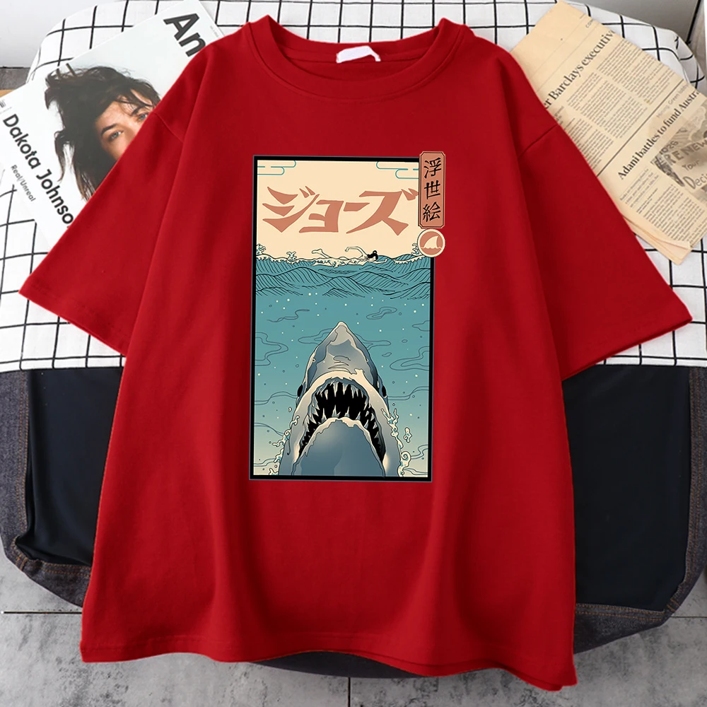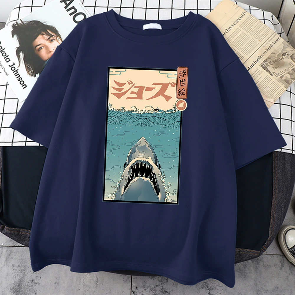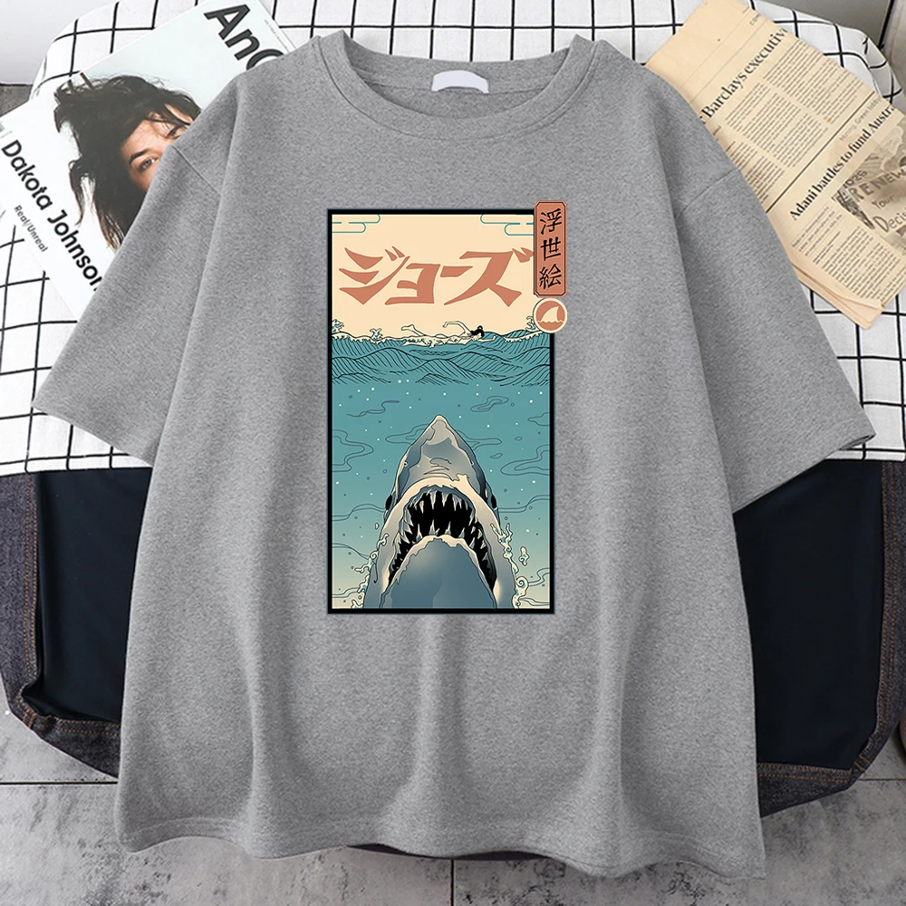 Мужские футболки с принтом акулы Ukiyoe, Спортивная Винтажная футболка в стиле оверсайз, модная удобная мужская футболка с коротким рукавом