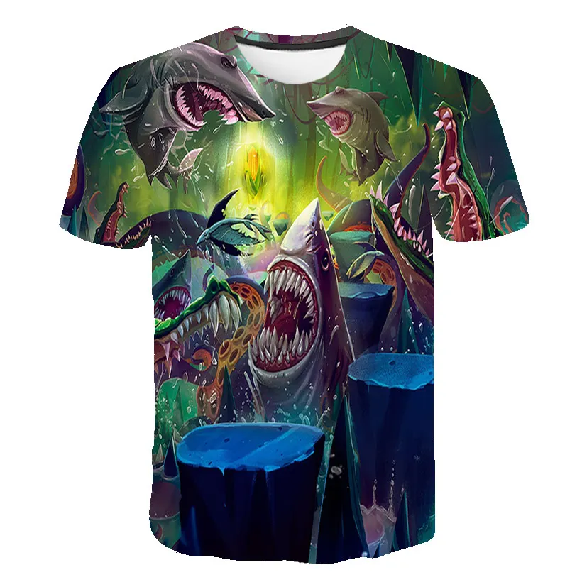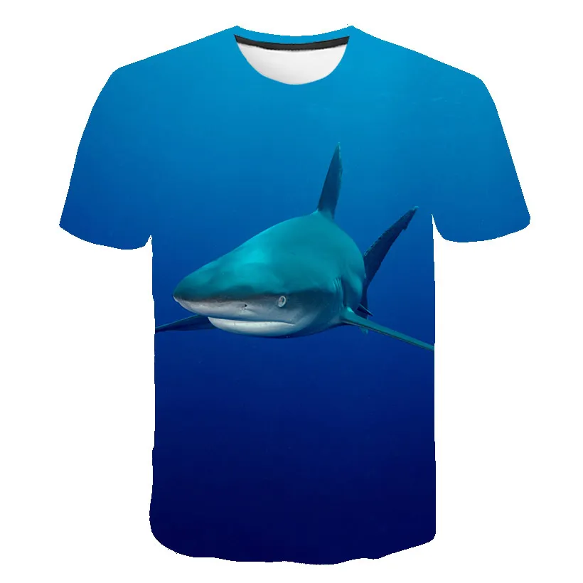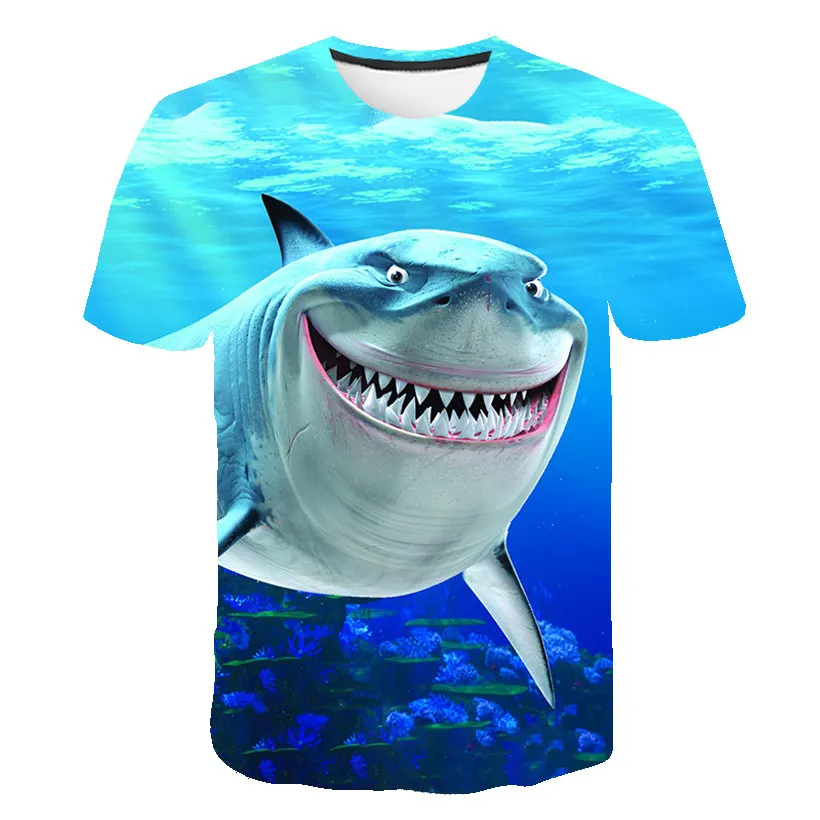 Летняя одежда для мальчиков, Детская футболка, детская одежда с мультяшным принтом Акула, футболки с животными для девочек, топы для малышей, новинка 2021