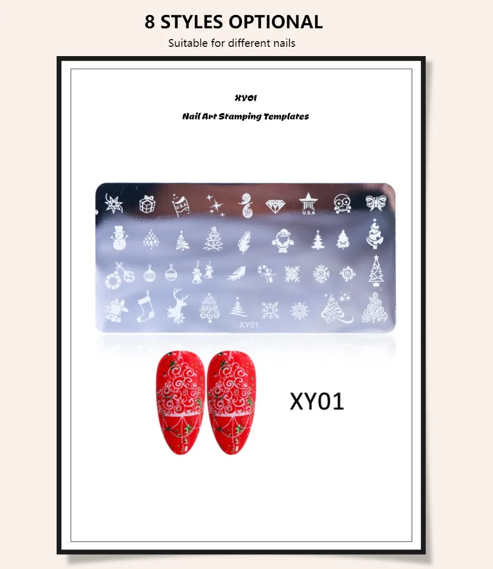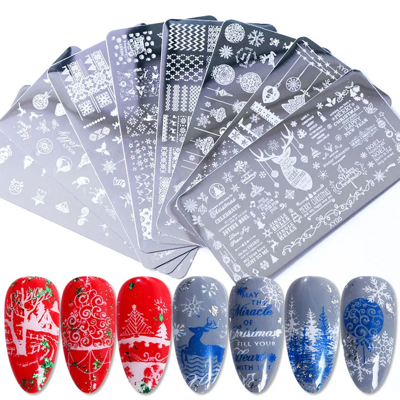Пластины для штамповки ногтей для ногтей из нержавеющей стали, Рождественская Снежинка, лак для шаблон для переноса изображений, Маникюрный Инструмент, XY01-08