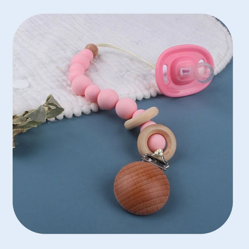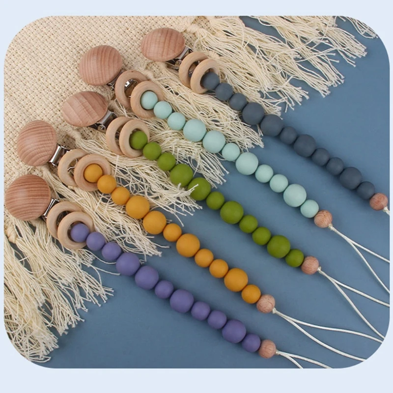 Силиконовые Бусины, зажим для детской соски, цепочка, деревянные зажимы с защитой от падения, кольцо для соски, зажим для соски, успокаивающий Держатель для пустышки
