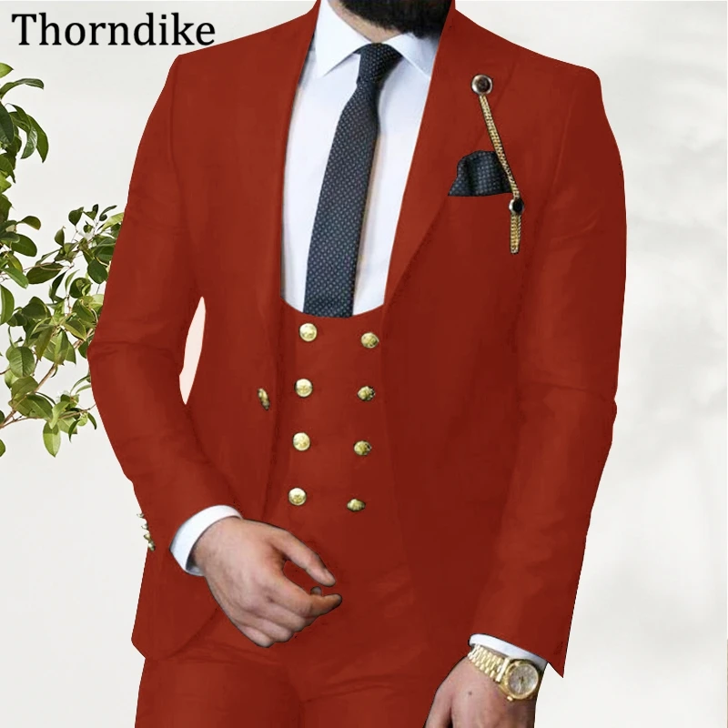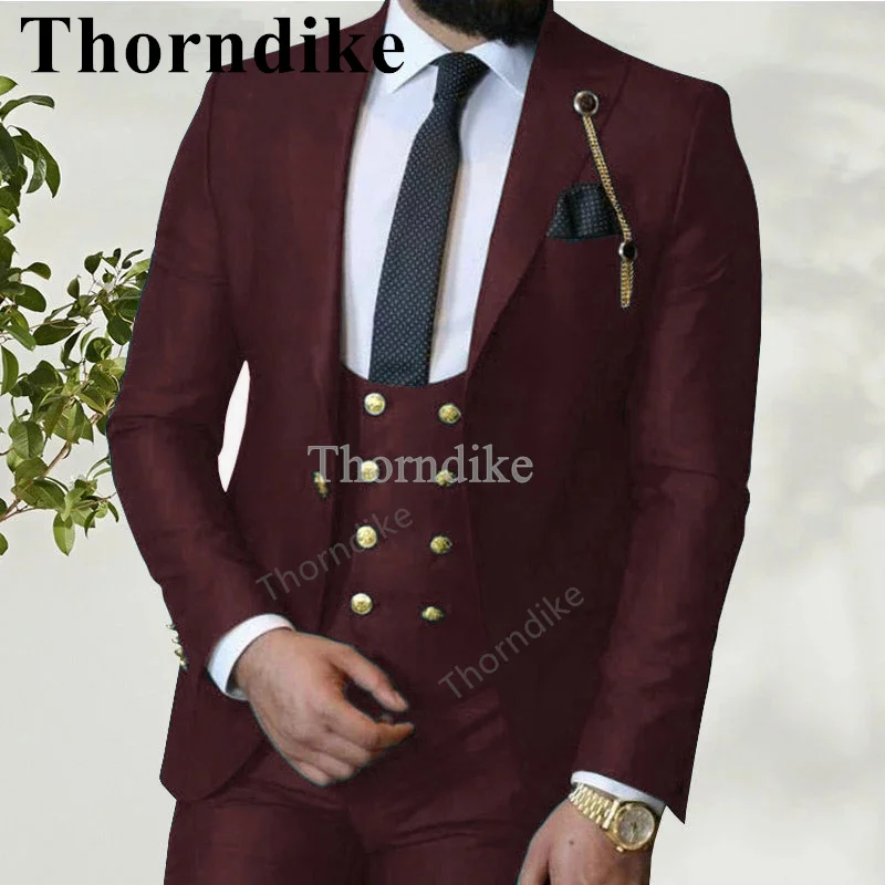 Винно-красный деловой мужской костюм Thorndike, костюм с заостренным лацканом (пиджаки + брюки + жилет), индивидуальный пошив, Официальный Свадебный костюм, однотонные элегантные костюмы
