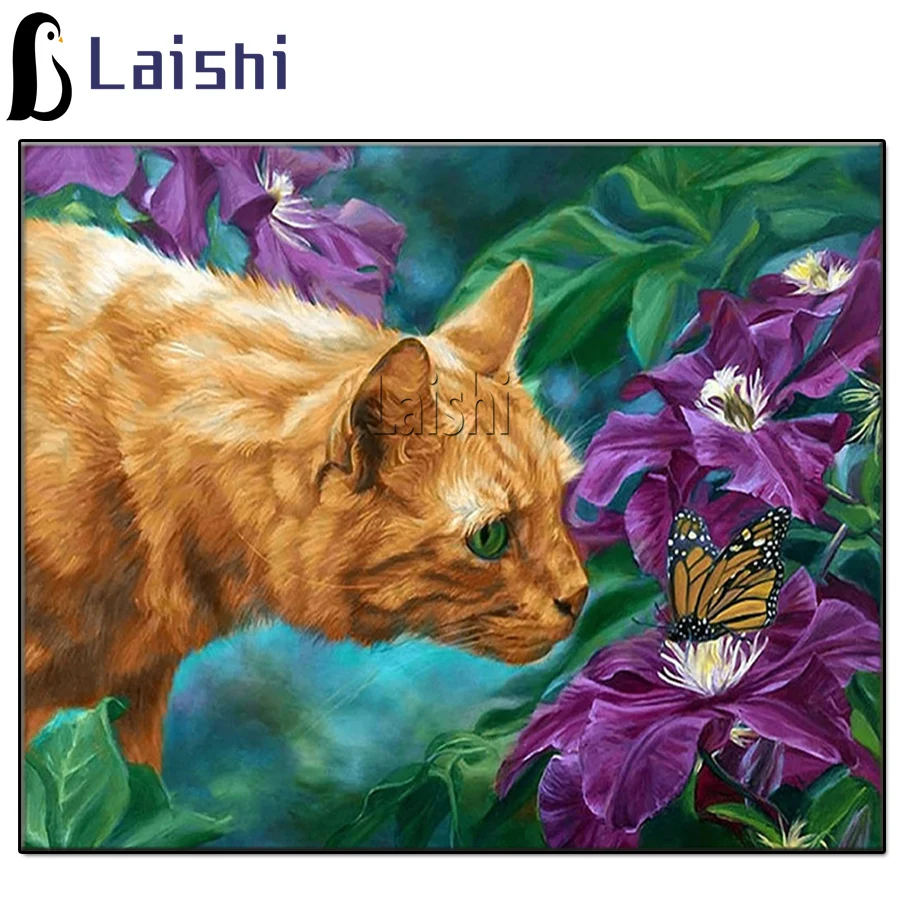 Полноразмерная круглая Алмазная мозаика 5D сделай сам с изображением кота, бабочки, цветка, животных, украшение для дома, подарки