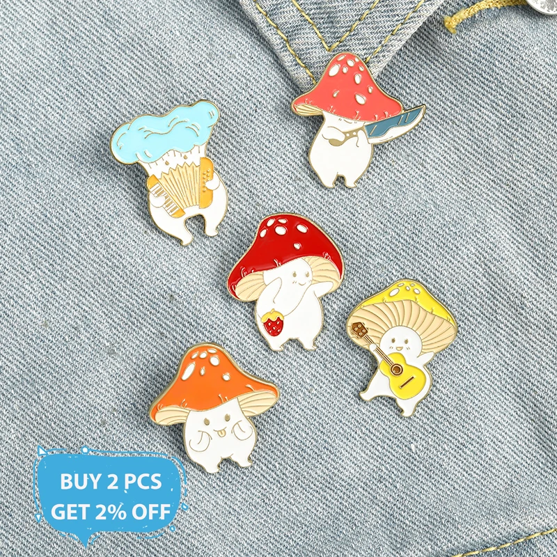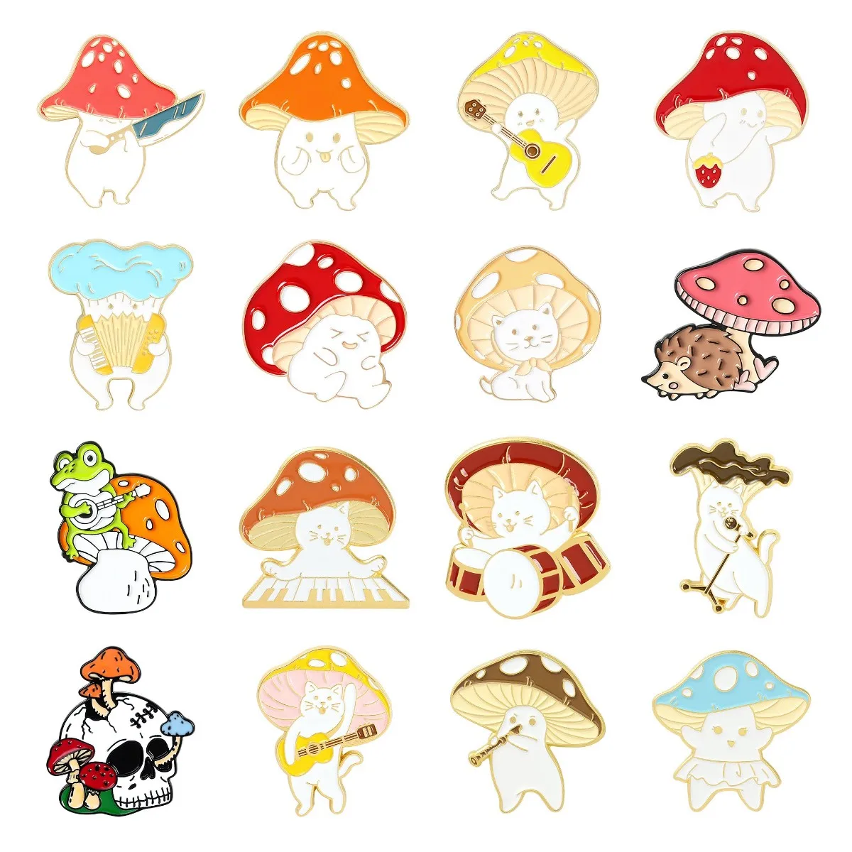 Брошь в форме гриба с эмалью, коллекция булавок значок на воротник, на булавке, мультяшное растение, грибок, на рюкзак, шляпу, ювелирные аксессуары
