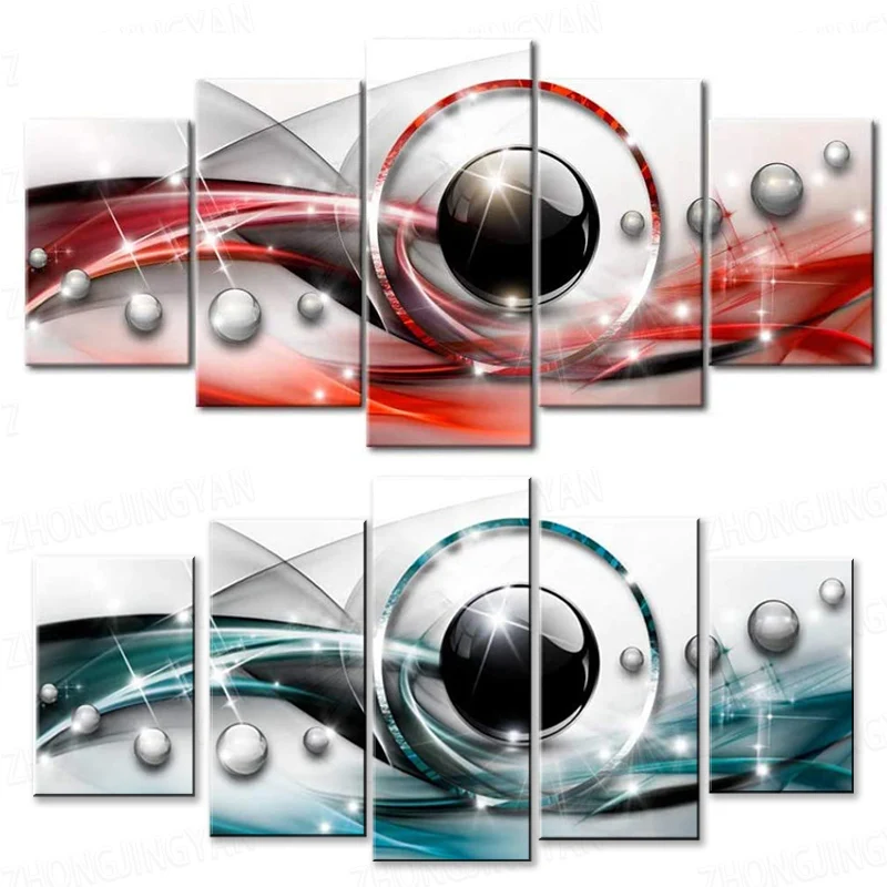 Зеленая Абстрактная Картина на холсте домашний Декор 5 панелей Бирюзовая Настенная картина для гостиной офиса готовое к