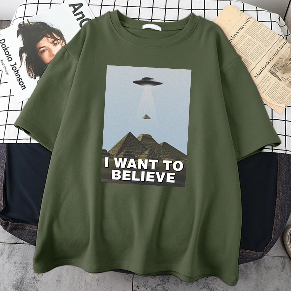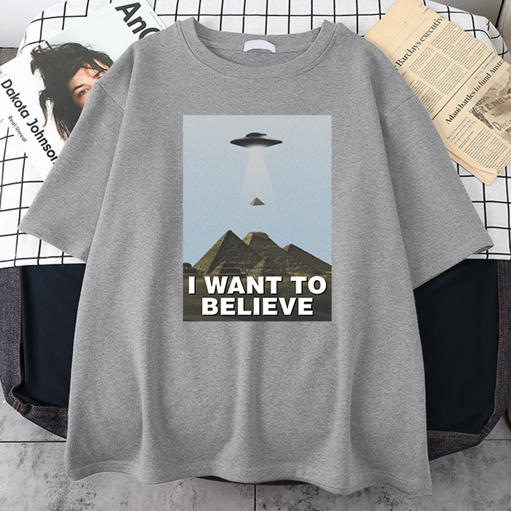 Мужская футболка с космическим кораблем I Want To Believe, с принтом инопланетянина, уличная облегающая футболка, крутая Мягкая футболка, креативный мужской топ оверсайз