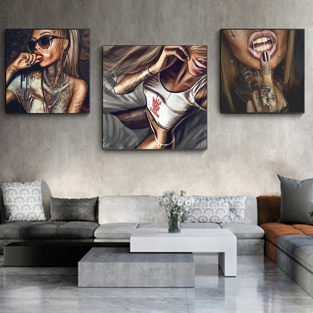 Абстрактная крутая сексуальная девушка холст картина одежда очки секс женщины плакаты Портреты Печать Настенная картина Декор для гостиной