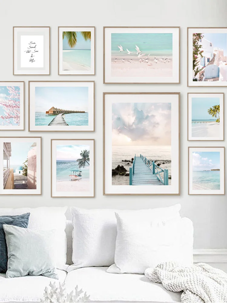 Морской пляж волны пальмы персикового цвета художественная стена с цитатой холст картины плакаты и принты украшение для гостиной скандинавский стиль Декор