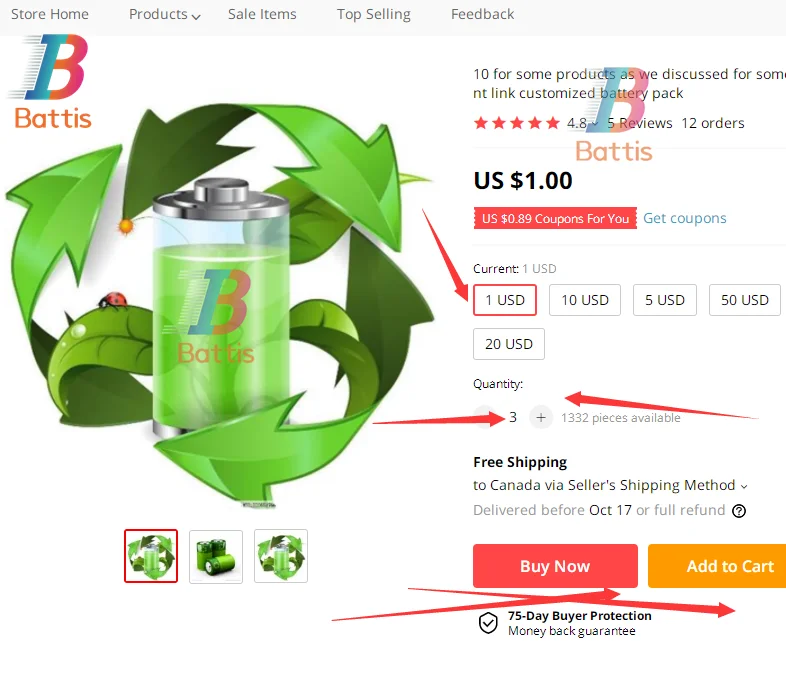 1 доллар за некоторые товары, как мы обсуждали, за дополнительную плату, как мы обсуждали ссылку на оплату, индивидуальный батарейный блок