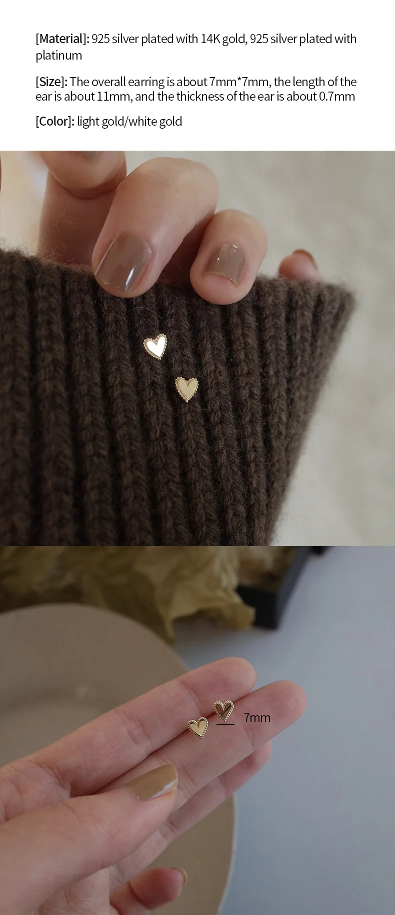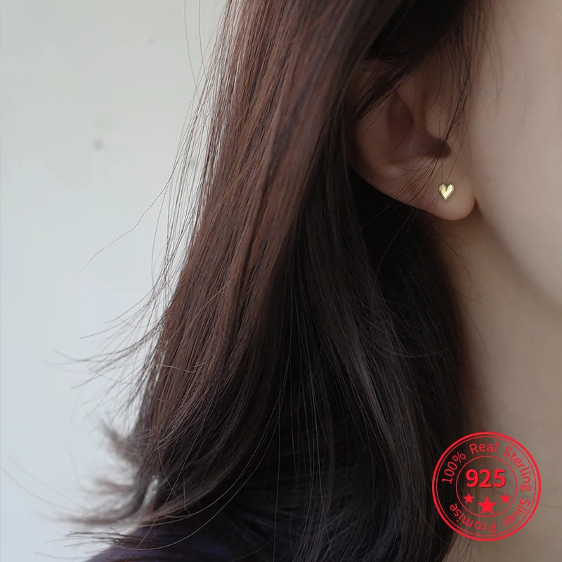 Женские серьги-гвоздики в форме сердца, из серебра 925 пробы