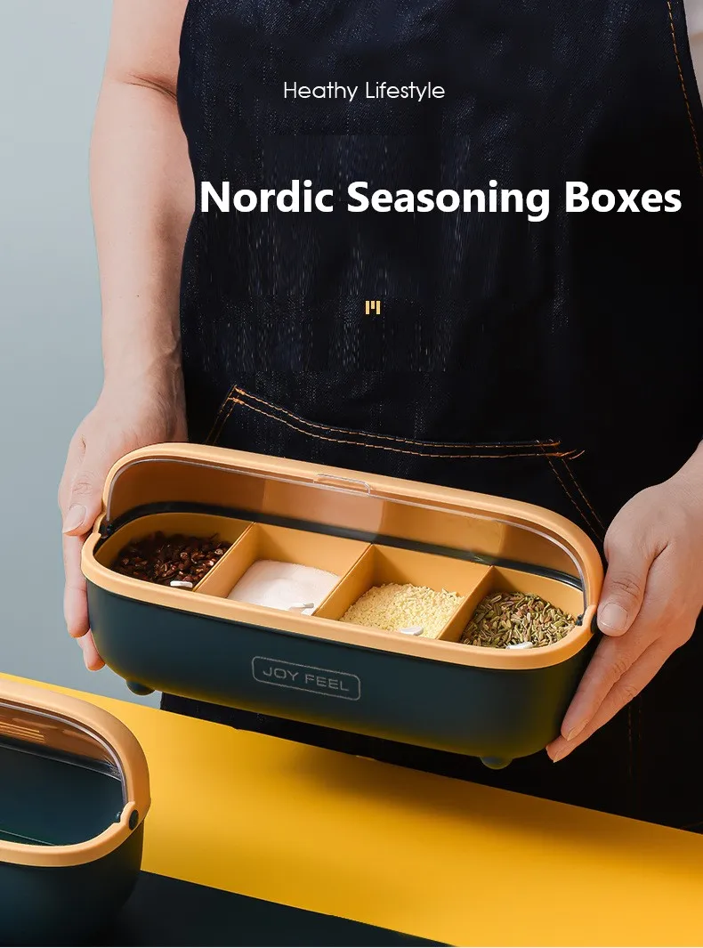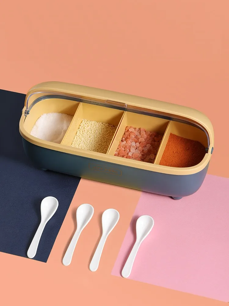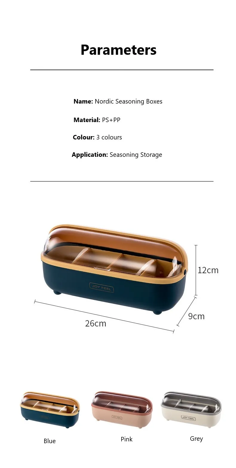 2021 новый дизайн приправы Коробки Nordic Стиль соль сахар перец 4 сетки контейнер для хранения с помощью ложки Кухня для хранения инструментов
