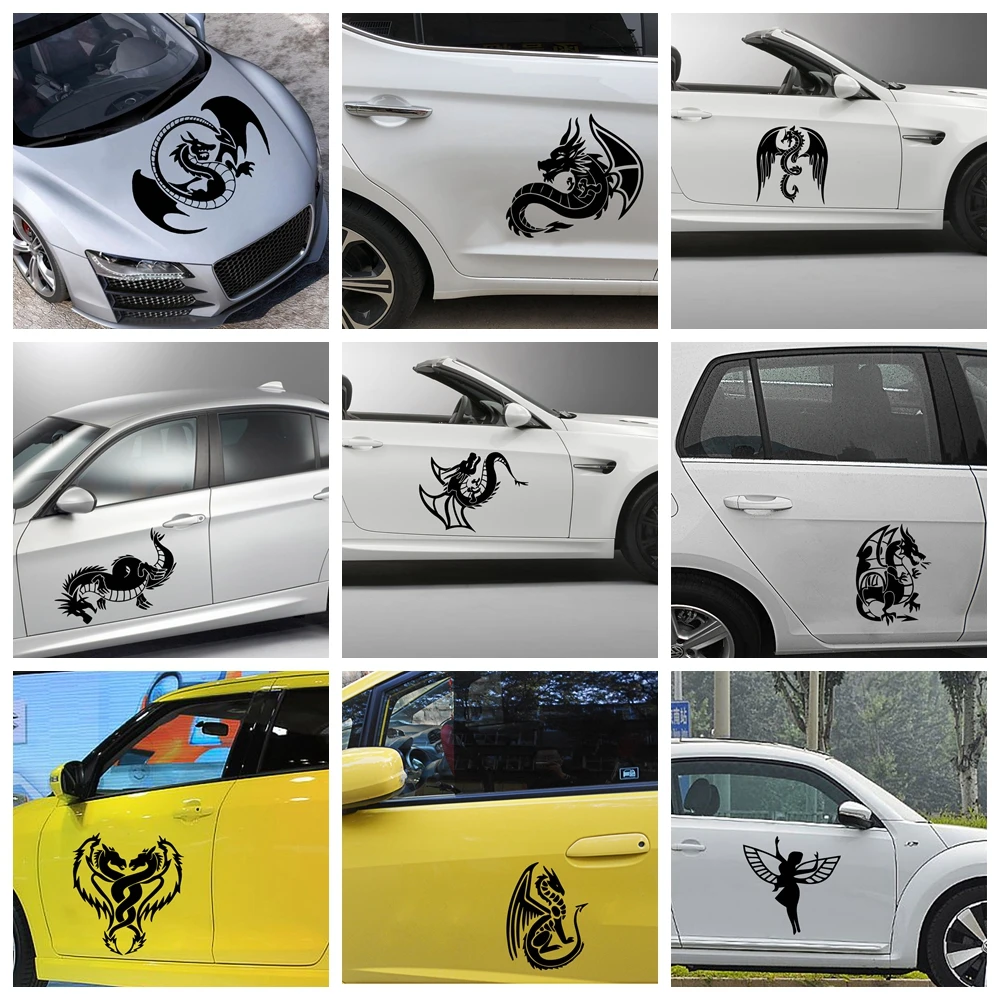 Милый дракон, углеродная наклейка, Виниловая наклейка для автомобильного стайлинга, крышка двигателя, наклейка для двери, окна, Dargon, Виниловая наклейка для автомобиля