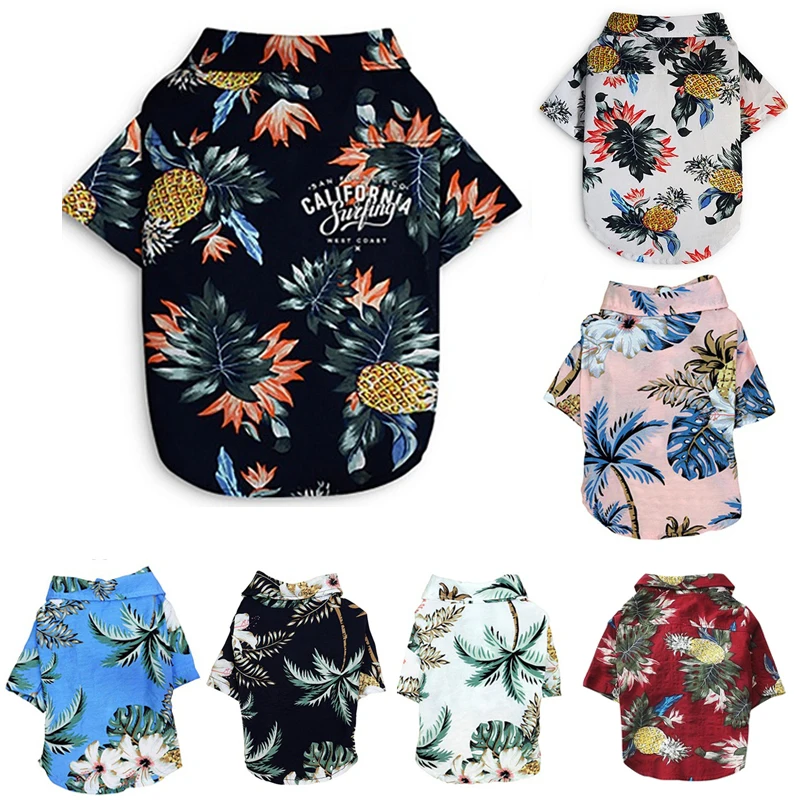 Летняя одежда с принтом для собак, Пляжная рубашка с цветочным принтом, куртка, пальто для собак, костюм для щенков, весенняя одежда для домашних животных