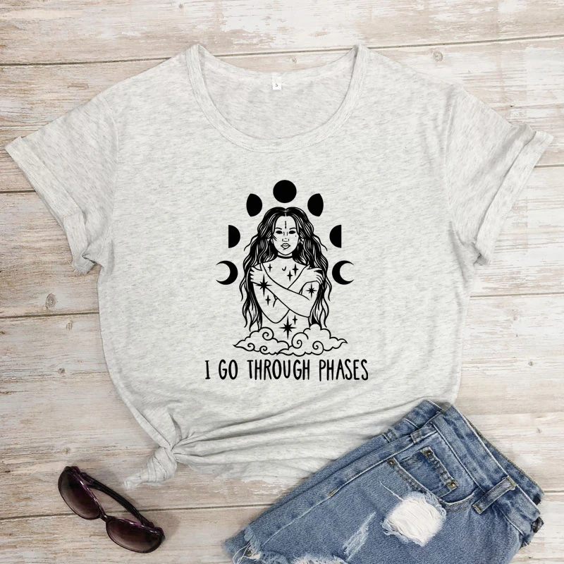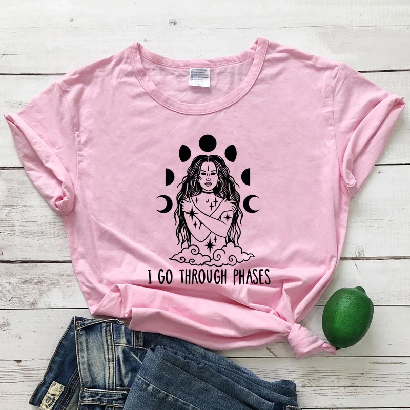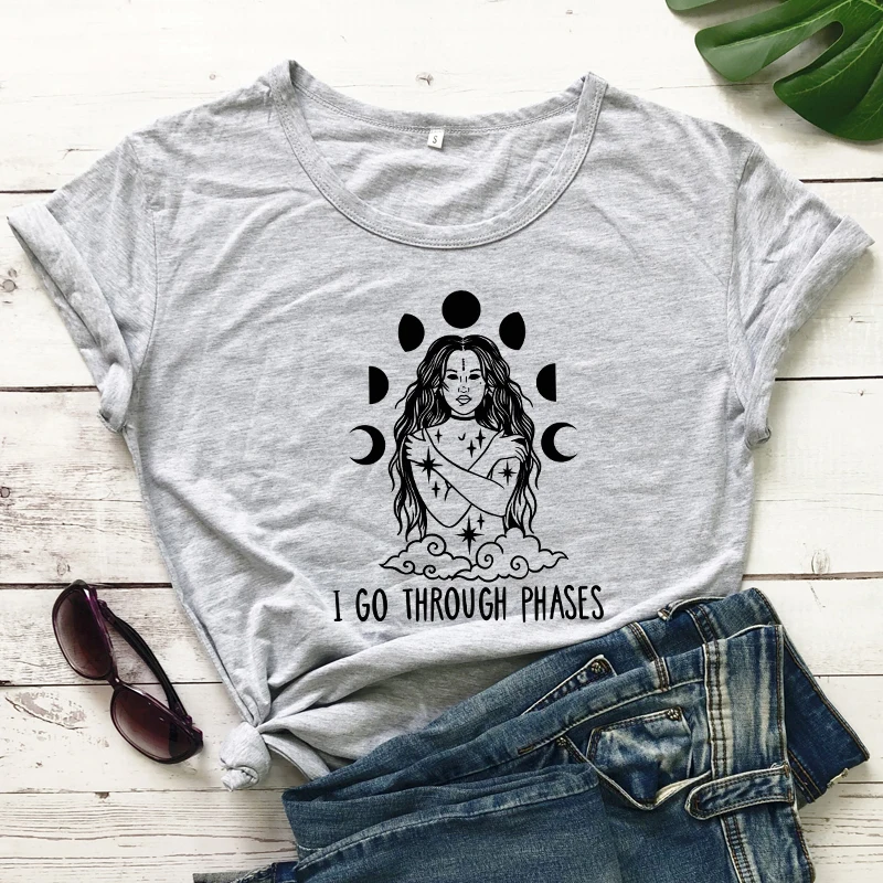 Женская Винтажная футболка с изображением Луны и фаз