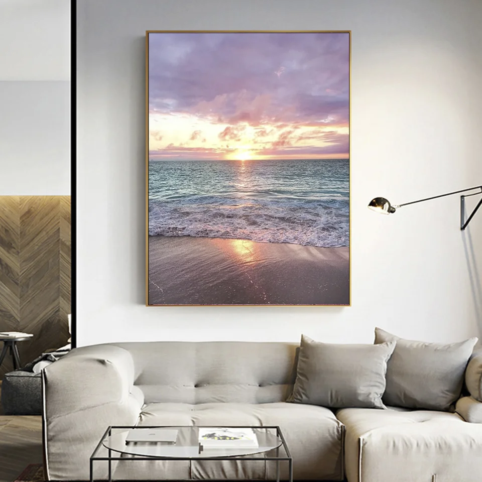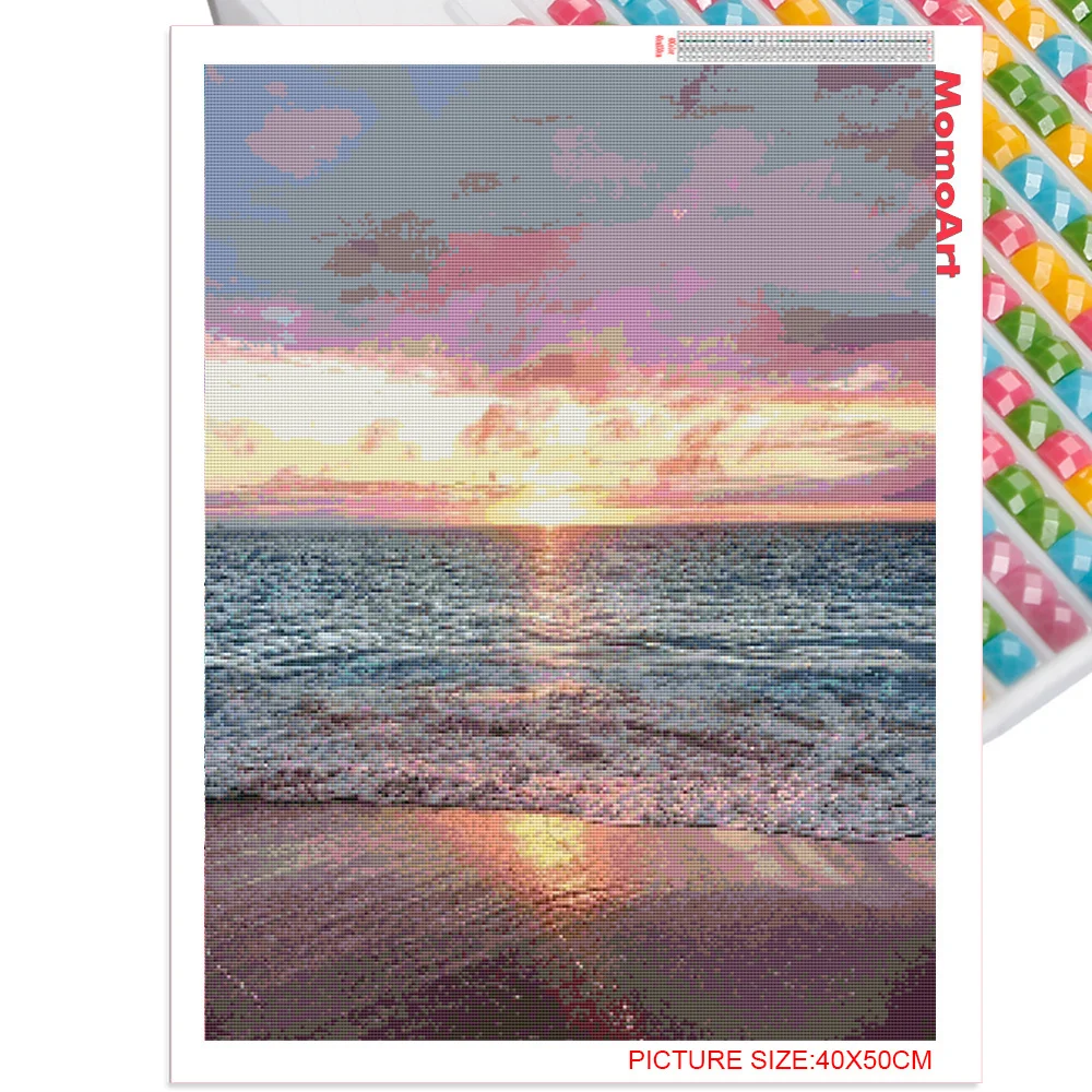 MomoArt DIY Бриллиантовая мозаика пейзаж картины Стразы Алмазная вышивка побережье камни в форме ромба Картина Закат Wall Art