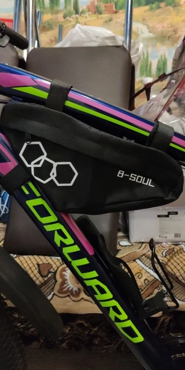 Эта маленькая сумка с застежкой-молнией помещается в треугольник вашего велосипеда. Крепится с помощью застежки на крючки и петли, закрывается на молнию.