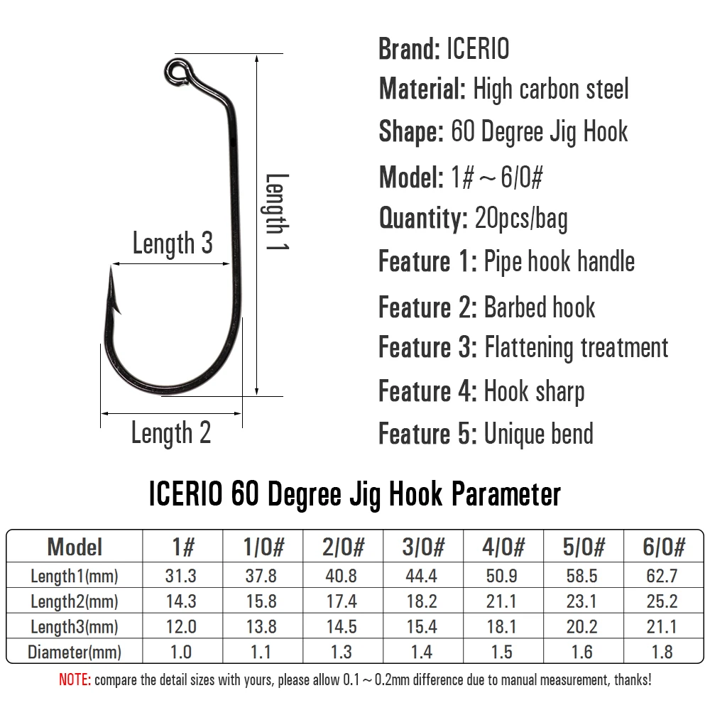 ICERIO 20 шт. 60 градусов джиг рыболовный крючок из высокоуглеродистой Сталь прочность резкость пресноводные морские рыболовные Стальная проволока рыболовные крючки