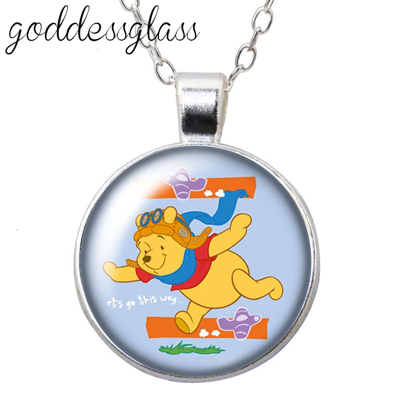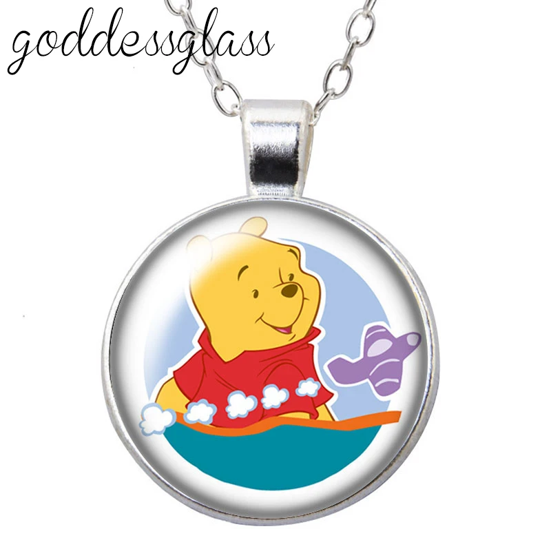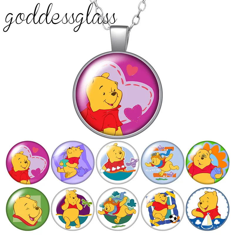 Disney колье с милой мишкой Винни для мф Винни-Пуха и с рисунком из мультфильма Медведь; Круглые стеклянные кабошоны разрисованные изделия из стекла с серебряным покрытиемподвеска с кристаллом ожерелье ювелирные изделия для подарка