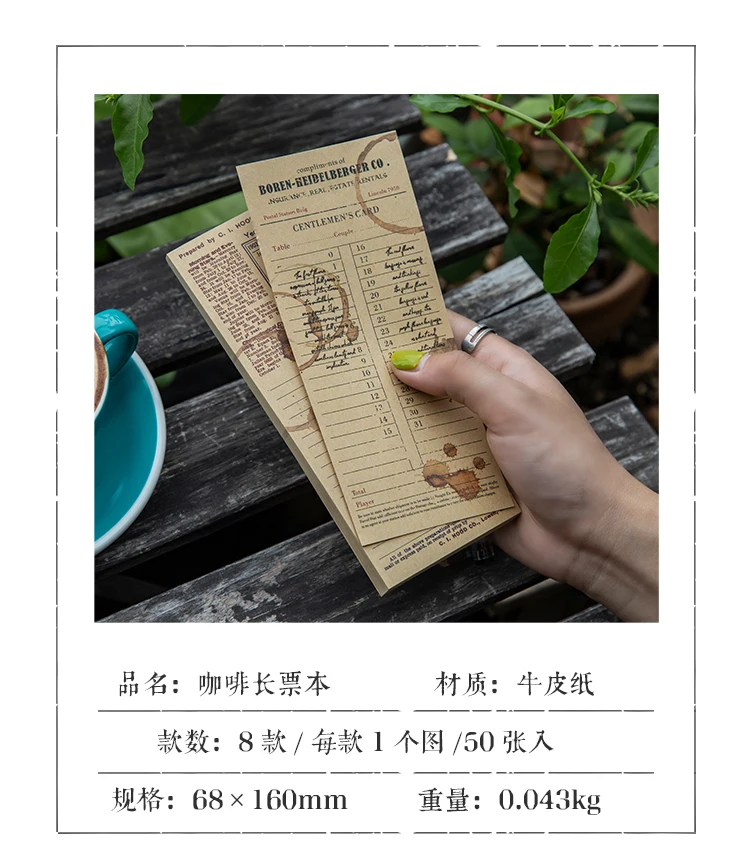 Dimi 50 листов кофейных длинных билетов, крафт-бумага, винтажный бл...