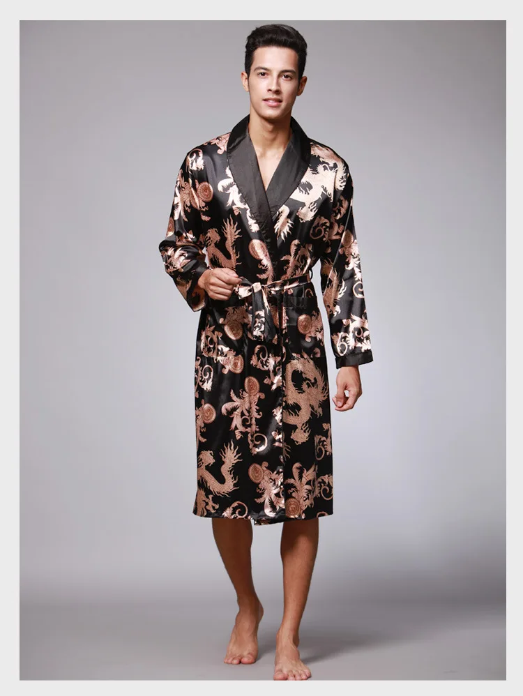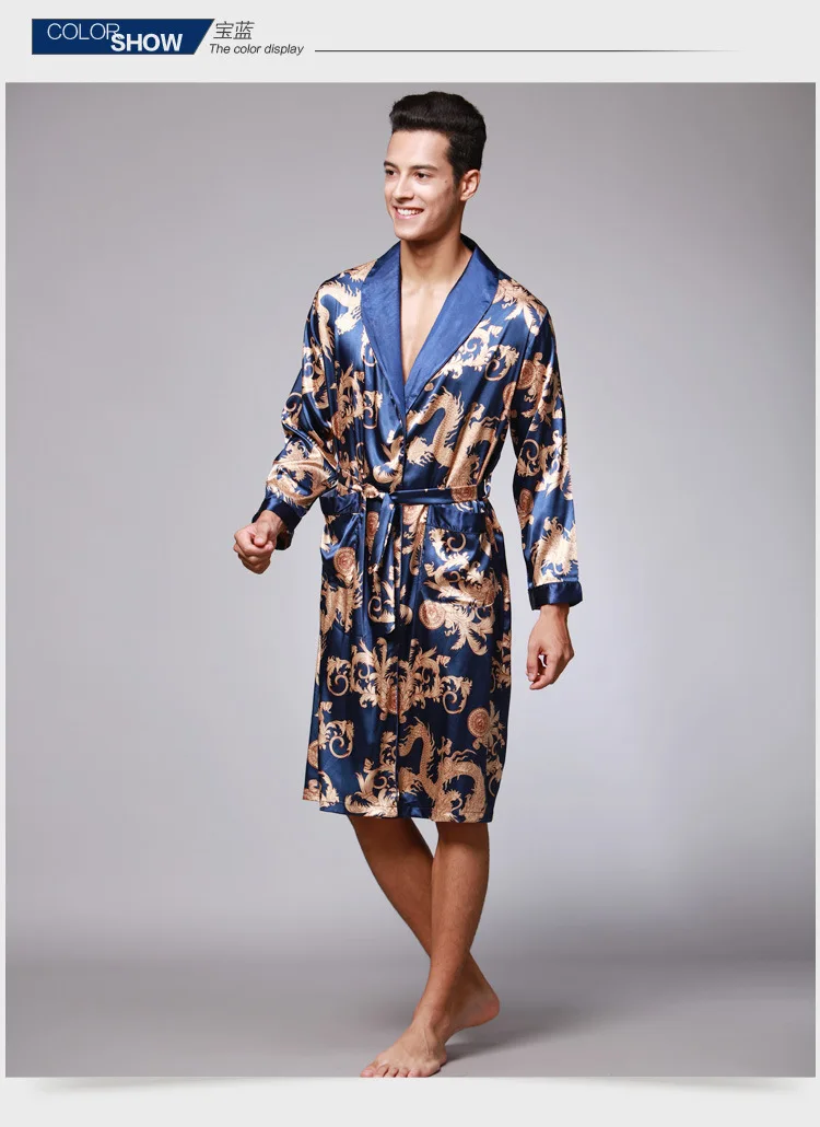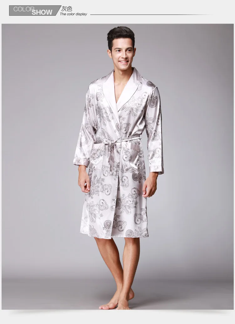 Халат-кимоно мужской с принтом, атласное шелковое ночная рубашка, П...