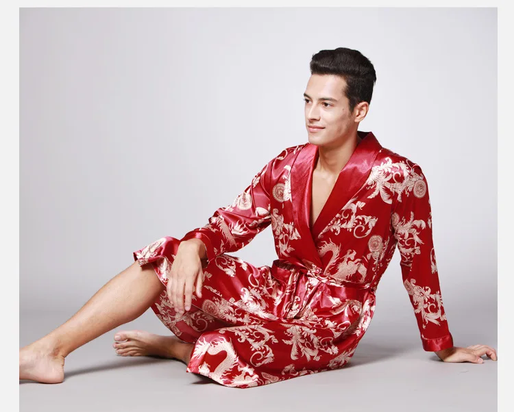 Роскошный китайский халат King Dragon для мужчин, атласная Шелковая...