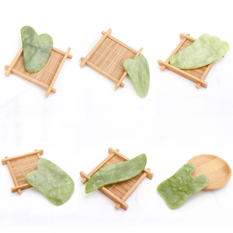 Зеленый натуральный нефрит Guasha скраппинг пластина Gua Sha массажер для лица Меридиан скраппинг пластина кусок массажные инструменты рычаг массажный инструмент