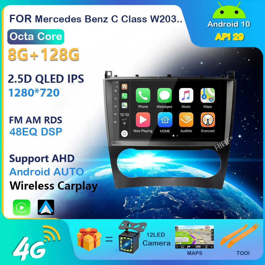 Автомобильный мультимедийный плеер для Mercedes Benz C Class W203 C200 C230 C240 C320 C350 CLK W209 2005-2009 2 Din Android 10 GPS Авторадио