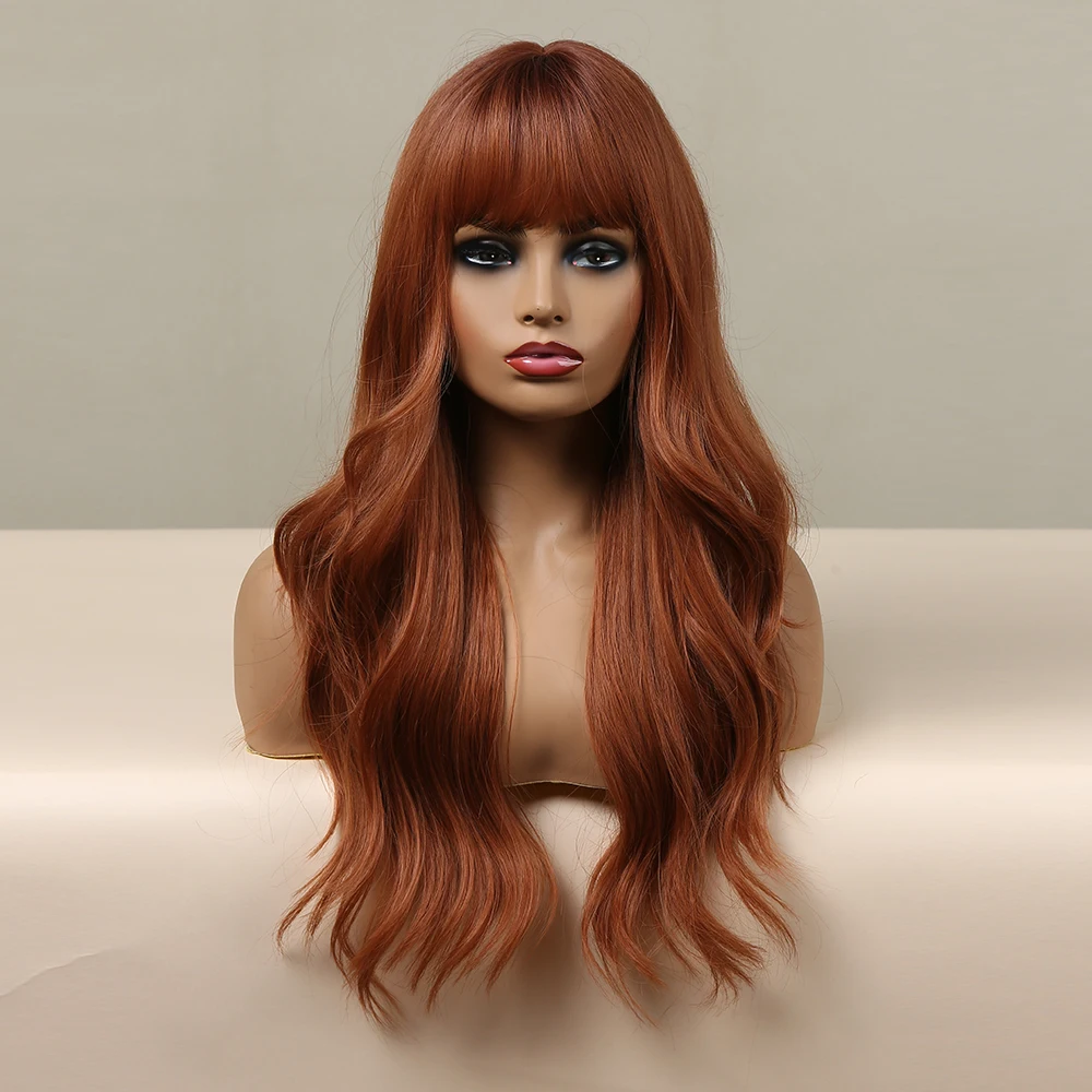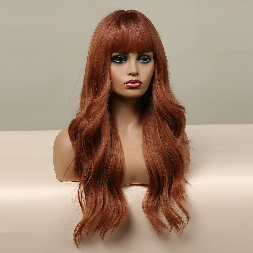 Длинные коричневые парики LOUIS FERRE с эффектом омбре и челкой для женщин, синтетические натуральные волнистые искусственные волосы, парики для косплея, термостойкие парики оранжевого и коричневого цветов