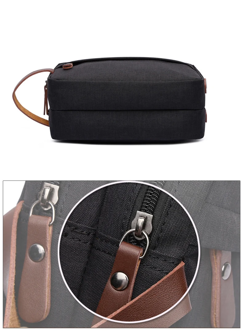 Новая повседневная холщовая косметичка с кожаной ручкой для мужчин ...