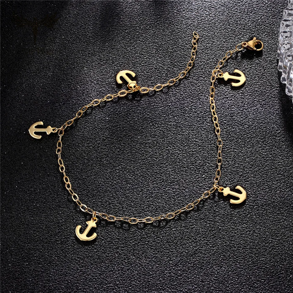 Ножной браслет с подвеской в виде золотого якоря для женщин и девушек, цепочка из нержавеющей стали, пляжная мода, ювелирные изделия для лодыжки