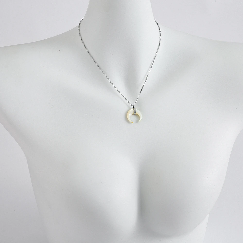 Одежда высшего качества белый cowry подвеска в форме рога, натуральная основа, ожерелье с изображением цепь из нержавеющей стали как подарок на день матери