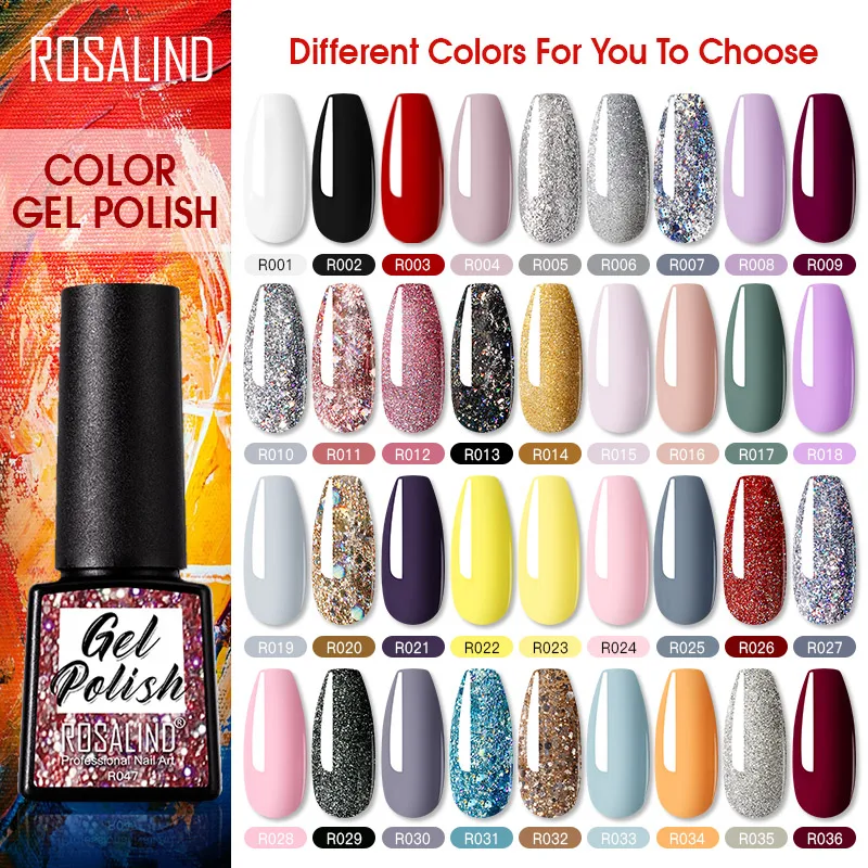 Гель-лак для ногтей ROSALIND 7,3 мл, полуперманентный отмачиваемый Блестящий Цветной Гель-лак для дизайна ногтей, дизайн для маникюра