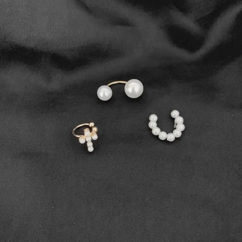 Каффы с жемчугом женские, серьги-клипсы с имитацией пирсинга, без Аксессуары для пирсинга, ювелирные изделия, 3 шт.