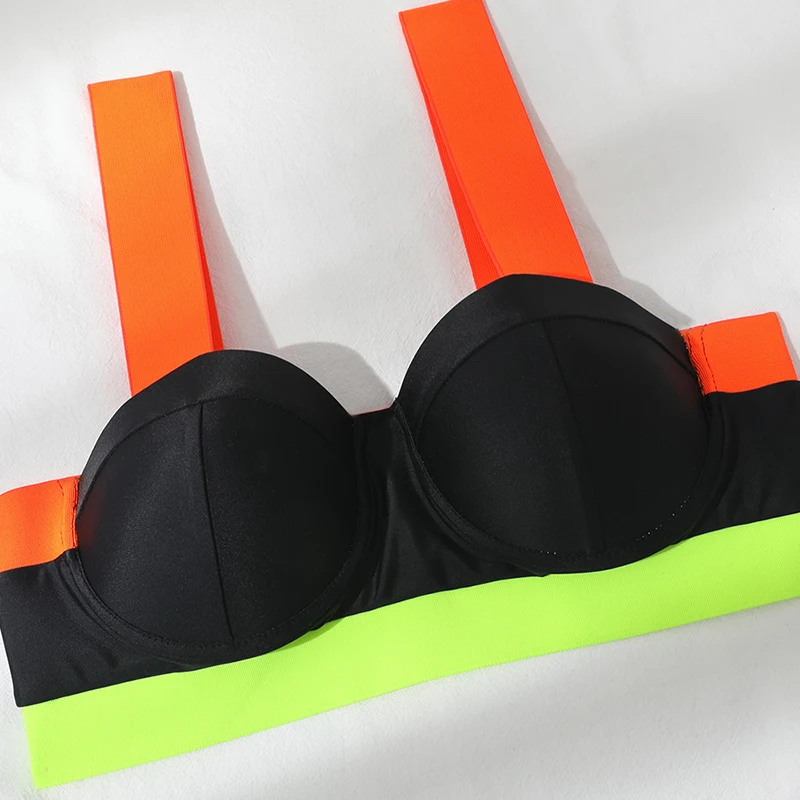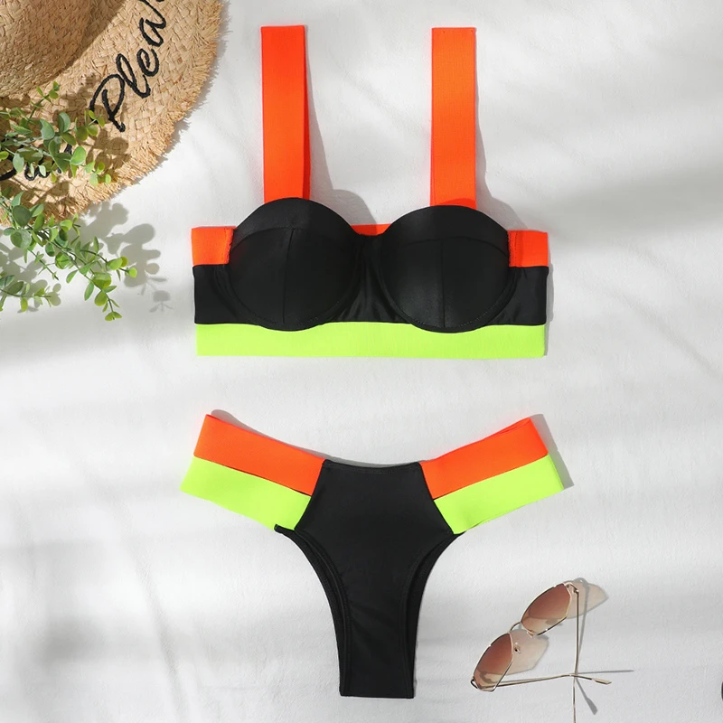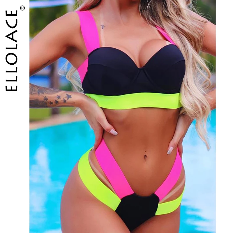 Ellolace неоновый купальник женский лоскутный бикини 2021 купальник женский мягкий пуш-ап бикини набор купальные костюмы раздельный купальник
