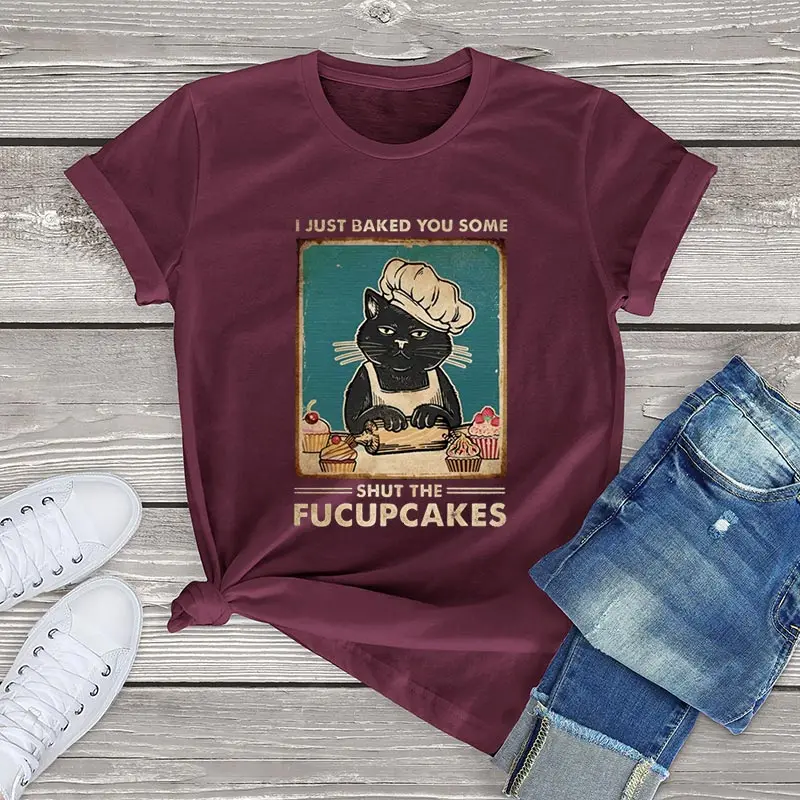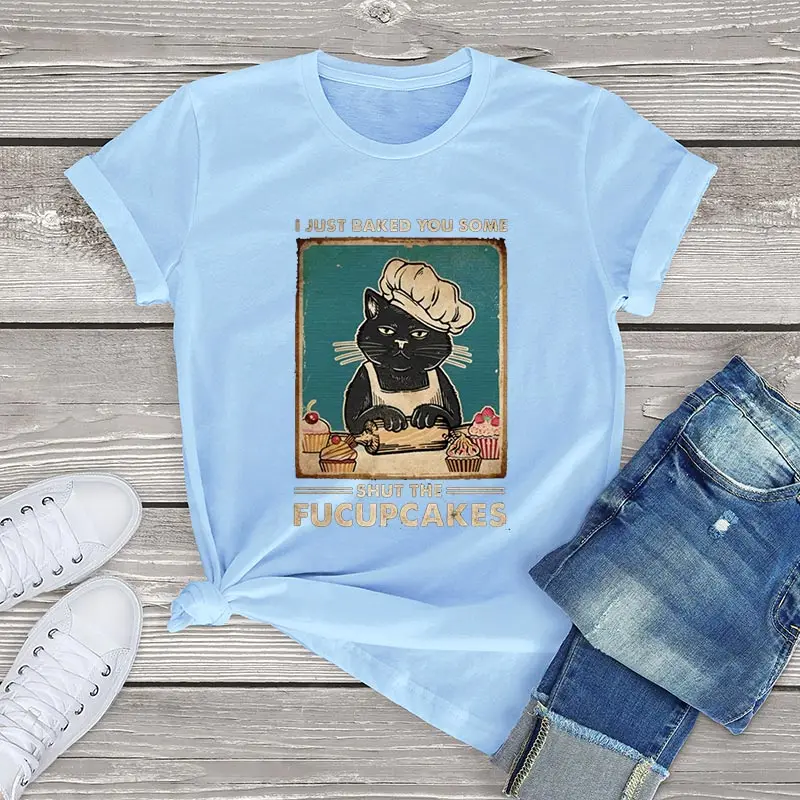 Забавная футболка с котом для торта, женская одежда, I Just Baked You Some Shut the Fucupcakes, футболка с забавными животными, Женская футболка из 100 хлопка, блуза с коротким рукавом, kawaii, женские топы, женские рубашки, 100 хлопок, модные футболки для девочек, женские топы, блузки, короткие модные топы с рукавами 3xl, Мягкие Блузки, женская одежда, летняя уличная одежда 3xl