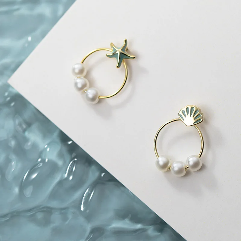 Серьги-гвоздики женские Асимметричные из серебра 925 пробы, с искусственным жемчугом